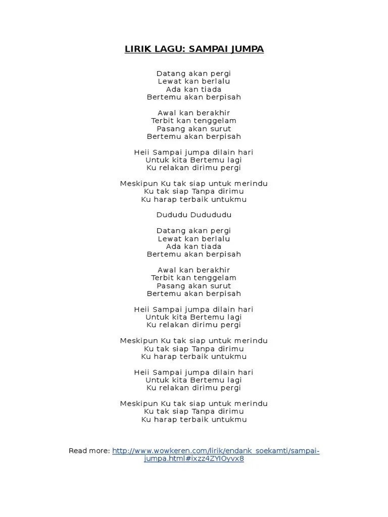 Lirik Lagu Bertemu Dan Berpisah : Lirik Sampai Jumpa